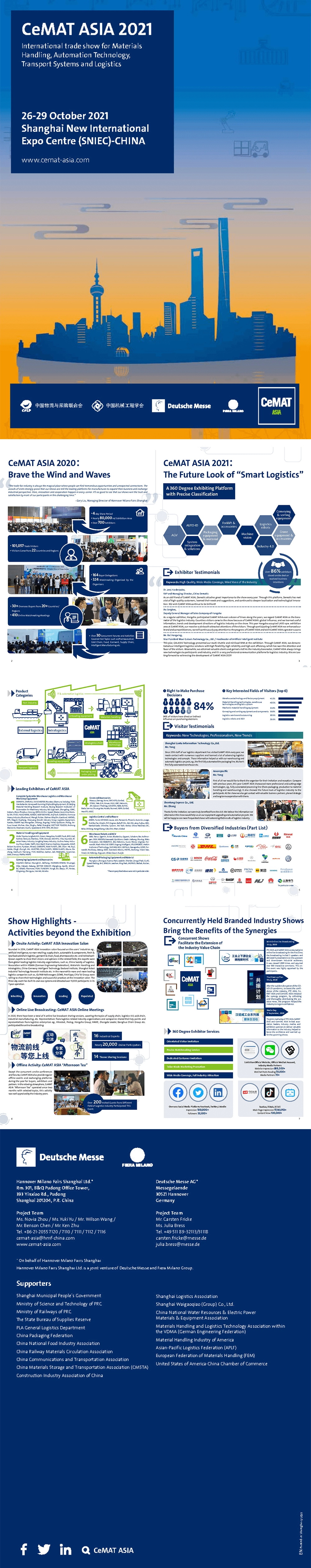 22. mezinárodní výstava logistických technologií a dopravních systémů, každoroční průmyslová událost v asijsko-pacifickém regionu, se bude konat v Shanghai New International Expo Center od 26. do 29. října 2021. Výstava s tématem „Smart Logistics“ představí inovativní úspěchy inteligentní výroby a společně vybuduje velkou průmyslovou platformu napříč různými obory.